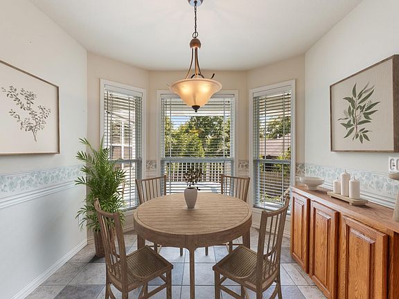 Picturesque landscapingLarge covered deckStunning scraped hardwood flooringGas fireplaceFormal dining roomBreakfast nook