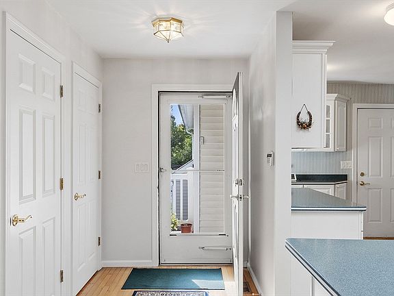White kitchenPatio areaDining areaWelcoming front porch entranceGas fireplaced great roomCorian countertopsHdwd flooring