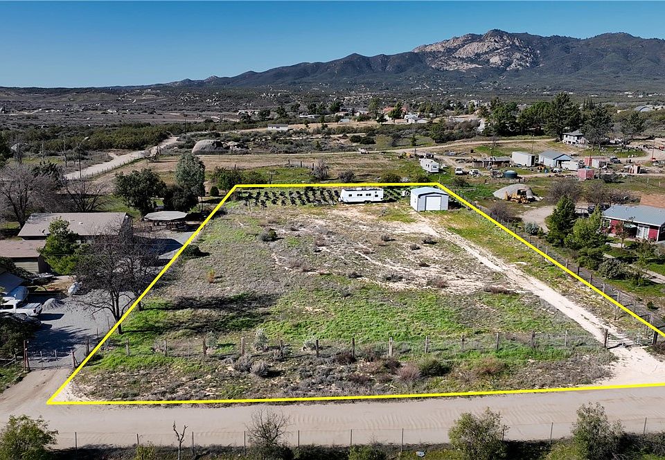 Approximately 1.25 acres of FLAT & FENCED, usable land located in the high-desert community of Anza. Property features a functional WATER WELL and STEEL BUILDING. Enjoy expansive mountain views and a rural setting suitable for agricultural or residential uses consistent with zoning. Anza sits at an elevation of approximately 3700–4,200 feet and offers a mountain-influenced climate with four distinct seasons. Summers are warm and dry, while spring and fall bring mild temperatures and cooler evenings. Winters are generally cool with occasional frost or light snowfall. The elevated location provides lower humidity and cooler temperatures than surrounding desert areas. Buyer to verify zoning, utilities, and permitted uses with Riverside County. ***Bank financing available with as little as 15% down payment ***