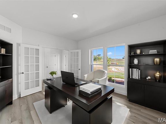 The Bradford from Rolwes Company’s Estate Series is a stunning one-and-a-half-story home that perfectly blends elegance, comfort, and functionality. This to-be-built floor plan features four bedrooms, three-and-a-half baths, and a three-car garage. From the moment you enter, the foyer opens to a formal dining room and a sunlit two-story great room with a cozy fireplace, creating a dramatic and welcoming first impression. The spacious kitchen includes an oversized island, walk-in pantry, and seamless flow into the dining area and hearth room, ideal for entertaining or family gatherings. The owner’s suite serves as a luxurious retreat with a private bath and a large walk-in closet, while the laundry and powder rooms add main-floor convenience. Upstairs, the second floor features a versatile bonus room, a private guest suite, and two additional bedrooms connected by a Jack & Jill bath. Personalize your Bradford with options such as vaulted or coffered ceilings, a study, bay windows, a hearth room fireplace, or a flex room. Select floor plans can also accommodate extended garages for boat storage, and the generous lot sizes allow space for an optional detached garage. As part of the Lake St. Louis Community Association, homeowners enjoy exclusive amenities including full lake rights, clubhouse access, on-site dining, and community beaches, along with optional amenities such as golf, tennis, pickleball, fitness center, and pool access. Every Rolwes Company home includes enclosed soffits and fascia, a fully sodded yard, and a professional landscape package for lasting curb appeal. Images shown may reflect optional features. Please see your Sales Representative for a complete list of included features and community details.