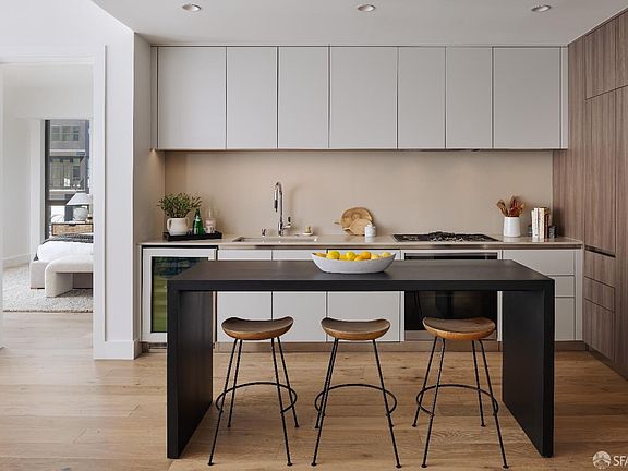 Experience elevated island living in this stunning, light-filled home at The Bristol. This spacious 2-bedroom, 2.5-bathroom residence features an open layout enhanced by a dramatic wall of floor-to-ceiling windows, offering breathtaking water views and an abundance of natural sunlight. Thoughtfully designed for comfort and style, this brand-new home blends modern elegance with the tranquility of island life.Soft contemporary interiors designed by Edmonds & Lee Architects complement the views and include Arclinea Italian cabinetry, Miele appliances, Dornbrach faucets, wide plank white oak flooring throughout. Elegant primary bath finishes w/ slab Carrara marble countertop, generous soaking tub & oversized walk-in shower. Residents enjoy unprecedented amenities, including a state-of-the-art fitness studio w/ a monthly calendar of complimentary fitness classes & wellness programming, residents lounge w/ fireplace, rooftop lounge w/ BBQ, staffed front desks, 24/7 roving security. Free shuttle service connects residents to the new ferry dock w/ daily service to the SF Ferry Building free of charge w/ a monthly transportation pass provided to each household. Secured garage parking available for purchase. Images from a similar model home.