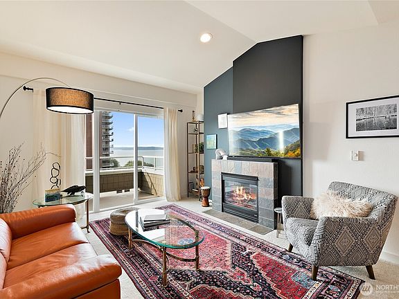 Welcome! Top floor condo in Tacoma’s coveted Stadium District. This private 2 bed, 2 bath condo features vaulted ceilings w/ open kitchen, granite counters, stainless steel appliances, bamboo floors, cozy gas fireplace, and private balconies off living room and primary bedroom. Large windows showcase breathtaking mountain & Commencement Bay views, providing warm natural light. This rare unit includes 2 covered secure parking spots. Primary suite offers large walk-in closet & built-ins. Second bedroom/office has private entrance. Enjoy life in walking distance to boutique restaurants, pubs, music, theater, Wright Park, bakeries, grocery store, light rail & freeway. Easy maintenance and secure for lock & leave travelers or a pied-a-terre.