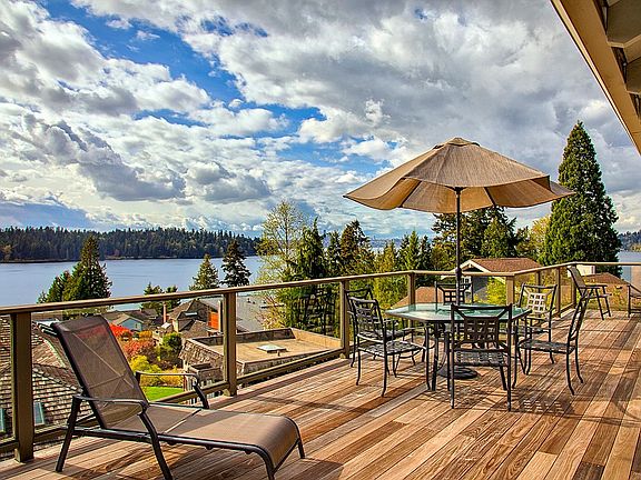 Brook Bay Beauty!Stunning city,mountain,lake, western views, sunsets from most rooms in the house!New view master suite w/ soaking tub,limestone counters,walk in closet.Additional master w/redone two headed shower lower level.New gas fireplace in living room with soaring ceilings,hardwood floors throughout main level.Lot beautifully landscaped w/ large grassy flat yard,private patios.Handsome ironwood deck with easy access to kitchen and dining rooms capturing protected covenant western views!