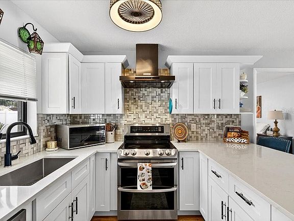 Modern upgradesCovered lanaiQuartz countertopsRemodeled bathroomsExtra-wide corner lotCovered patioPavers on patio