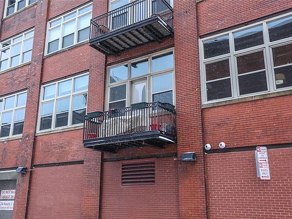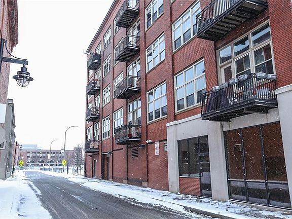 Updated two bedroom, two and a half bath condo in the heart of the Downtown Rochester. Views of the city and the Susan B. Anthony-Frederick Douglas Memorial Bridge/Genesee River. Rooftop Terrace for residents is perfect for outdoor entertaining. Private balcony and two designated off street carport spaces in a gated lot as well as an additional guest gated parking lot. Neutral colors throughout, one of the two bedrooms has been converted into a custom walk-in closet but can easily be converted back to a second bedroom prior to closing should the buyer prefer it. All three bathrooms have been updated as well as the kitchen which features quartz counters and stainless steel appliances overlooking the living/dining room that gets tons of natural light. In unit washer and dryer, hardwood floors throughout, high exposed beam ceilings with a great open concept that anyone can appreciate. Second floor unit (one flight of stairs but there is also an elevator). Key FOB access for secure resident entry.