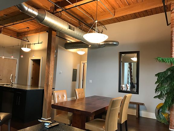 Stunning modern industrial loft in Rochester's Capron Street Lofts! *This top level top unit has its own PRIVATE rooftop deck and PRIVATE Veranda to enjoy the amazing city view* This incredible loft is 2 stories with high ceilings, exposed beams, industrial style with modern kitchen. Granite countertops, beautiful hardwood floors throughout, some exposed brick. Gas fireplace in the living room to make your home cozy with your stunning views. Laundry is on the first floor along with the master suite and bath. Not to mention the whirlpool tub! The half bath is readyto install the shower if you choose to. The black metal spiral staircase up to the private deck area including access to the shared rooftop deck. You will have 2 assigned covered parking spaces in the carport. Storage area 3' X 4' available. 1 Dog allowed, 2 cats. RG&E average about $130/mo according to the current owner. HOA includes Green Light and Web. Don't miss this amazing 2nd story Condo with all its stylish details!