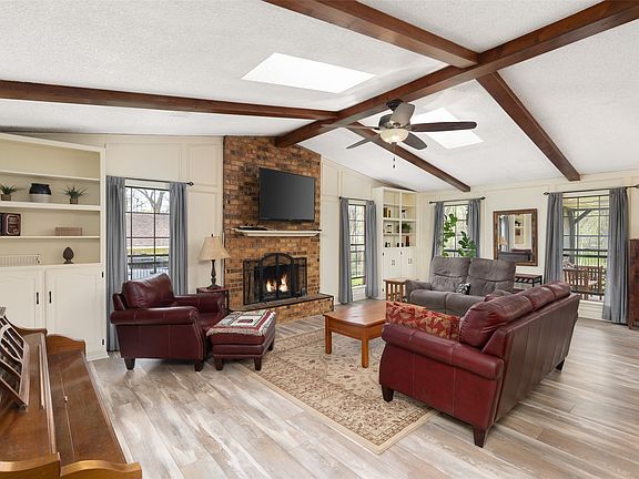 Step inside to a bright and spacious open floor plan, where the living, dining, and kitchen areas flow seamlessly together—perfect for both everyday living and entertaining. The inviting living area features vaulted ceilings, a cozy fireplace, and large windows that fill the space with natural light.