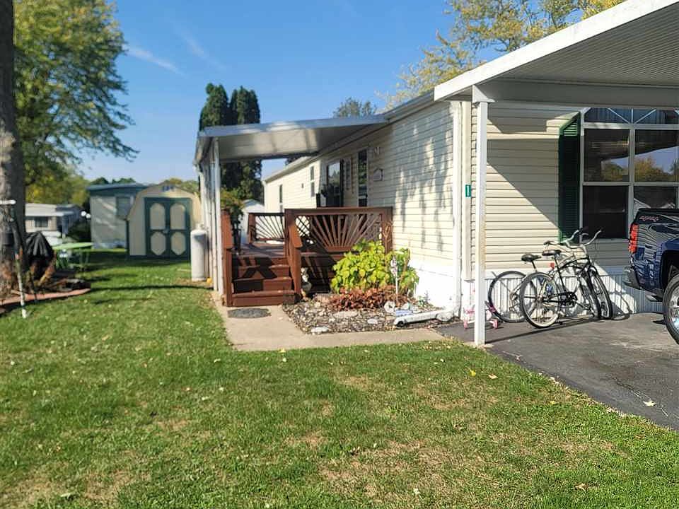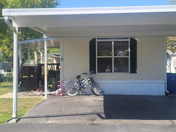 You will fall in love with this spacious home with an open concept area that combines the living room, kitchen and dining area - perfect for relaxing or entertaining. The kitchen has stainless steel appliances and nice cabinetry that partially separates it from the living room. This kitchen is perfectly laid out for the gourmet chef of the carry in food lover. The main bedroom is large enough for a king size bed. The attached bath is a great retreat with a garden tub, separate shower and double vanities. Separate bedrooms are always desired and the second bedroom and bath are at the other end of the home. Outside, there is a newly painted deck and freshly painted shed. Your car will be sheltered in the 2 car carport. This home is in Mobile Manor neighborhood. It is a 55 years and older park with limited access that is gated at night. It is well maintained with paved roads and drives. The low rental on the lot includes trash removal. It also includes use of the community swimming pool, basketball court, covered picnic pavilion and a nice meeting building with kitchen. You will receive a newsletter with the monthly activities. Buyer must be park approved. This is very nice easy living at a very affordable price. It is so much nicer than an apartment. You have your own yard and can plant flowers to your heart's content if you wish. For more information contact Barb Garrett at 765-969-0921 or Barb@barbgarrett.com
