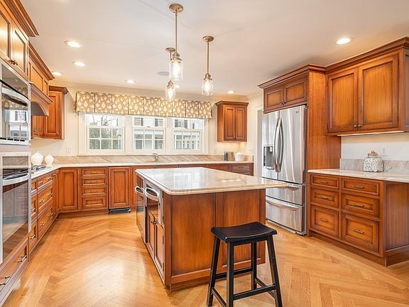 The epitome of sophistication in Winchester's Rangely neighborhood! This breathtaking Georgian boasts an elegant brick exterior & luxurious interior. On the 1st floor, relax by a fire in the living room, in the office, or in the formal dining room. Gourmet kitchen w/ large island, stone/granite countertops, spacious cabinets & pantry, dining area, wet bar, recessed lighting & patio access. Family room w/ fireplace & a 1/2 bath complete 1st floor. Head upstairs to the master suite for self-care in your spa-like ensuite bathroom, & enjoy a celeb-style dressing room/walk-in closet. 2nd floor includes 4 additional bedrooms, 2 bathrooms & oversized, luxurious laundry room. 3rd floor has 1 bedroom w/ ensuite bathroom and an office/den. Enjoy the oversized backyard w/ 2 private patios & enchanting gardens. Additional features: partially finished lower level, 2 car garage, central air, Sonos speakers (1st floor). Walking distance to Winchester Center, schools, commuter rail & walking trails.