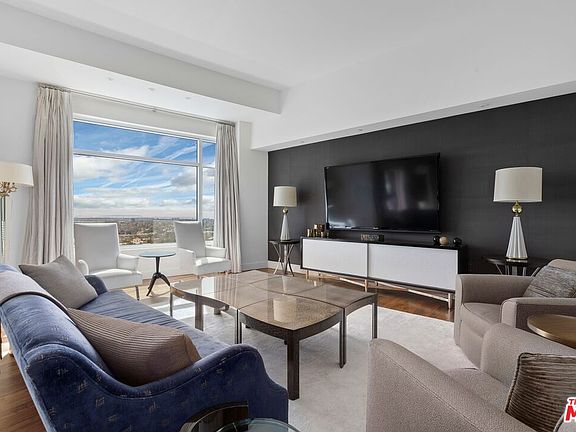 Live in the height of luxury at The Century, one of the most prestigious full-service high-rises on the West Coast, designed by Robert A.M. Stern Architects and developed by Related Companies. This rare 4-bedroom, 5-bathroom residence offers over 4,600 sq. ft. of single-level living with breathtaking panoramic views.A private elevator foyer opens to an expansive open floor plan ideal for entertaining, featuring a spacious living room with fireplace, formal dining area with chandelier, and a gourmet kitchen with granite countertops, stainless steel appliances, breakfast bar, banquette, and walk-in pantry with wine refrigerator. The large private terrace offers incredible sunset and ocean views.The primary suite includes a sitting area, two marble bathrooms (one with jetted tub and bidet), and two custom walk-in closets. Three additional en-suite bedrooms, powder room, and a separate laundry room with service entrance complete the layout.Building amenities include a 75-foot resort-style pool with cabanas and spa, state-of-the-art fitness center, yoga and Pilates studio, movie theater, conference facilities, wine storage, children's playroom, and lush landscaped grounds with outdoor dining areas, firepits, and walking paths. Additional features include 24-hour concierge, valet, doorman, and guard-gated security.Located moments from Beverly Hills, world-class dining, shopping, and entertainment.