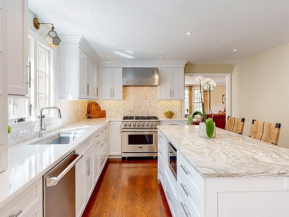 - Features: Flooring - Hardwood, Window(s) - Bay/Bow/Box, Dining Area, Pantry, Countertops - Stone/Granite/Solid, Countertops - Upgraded, French Doors, Kitchen Island, Cabinets - Upgraded, Exterior Access, Recessed Lighting, Remodeled, Slider, Stainless Steel Appliances, Wine Chiller, Gas Stove, Crown Molding