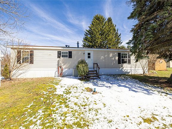 Enjoy One Floor Living in Williamson…Welcome to 1 Chestnut! Located in the Quiet Community of Oakwood Estates. This Updated 3 Bedroom, 2 Full Bath Home Offers 1,200 Sq Ft of Open Living Space on Treed, Corner Lot. Step Into the Large Living Room w/Vaulted Ceiling, Fresh Paint & Gas Stove FP! Living Room Opens Directly to Spacious Dining Room & Kitchen. Kitchen Boasts ABUNDANT Cabinet Space Including Wall of Cabinets Perfect for Pantry & Stainless Steel Appliances w/Newer Refrigerator. 3 Generous Sized Bedrooms Including Primary w/Double Closets & En Suite Bath w/Jacuzzi Tub! 2nd Family Bath & Laundry Room! NEW Carpet Throughout! NEW Front Steps! NEW Thermostat! 8x8 Shed w/Double Doors for Extra Storage. Lot Rent/HOA Includes Weekly Trash Pickup. Convenient Location to Lake Ontario, Sodus Bay, Stores, Restaurants & Expressways! Great Opportunity…Just Move in! No Delayed Negotiations!