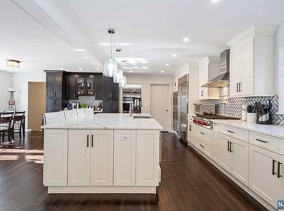 SET ON ONE OF THE MOST DESIRABLE STREETS ON THE EAST HILL OF TENAFLY, TOTALLY RENOVATED 4 BR 3.2 FBTH COLONIAL. WALK RIGHT INTO A SPACIOUS ENTRY FOYER THAT OPENS UP TO A LARGE FORMAL LIVING ROOM WITH FIREPLACE AND TONS OF LIGHT. LIVING ROOM FLOWS SEAMLESSLY INTO FORMAL DINING ROOM W/GLASS DOORS LEADING TO BACKYARD AND MODERN CUSTOM RENOVATED KITCHEN. A COMBINATION OF NEW DARK PRE FINISHED WOOD FLOORS, CUSTOM CABINETRY, AN OVERSIZED CENTER ISLAND, TONS OF STORAGE, SUB ZERO FRIDGE, HIGH END STAINLESS STEEL APPLIANCES, WINE FRIDGE, PANTRY AND STUDY AREA. OFF THE KITCHEN IS A HUGE GREAT ROOM PERFECT FOR MOVIE NIGHT OR ENTERTAINING, DEN/OFFICE AND POWDER ROOM. UP THE MODERN STAIRCASE IS MASTER SUITE W/WIC AND RENOVATED BATH W/STEAM SHOWER, 3 LARGE SIZE BR AND 2 FULL BATHS. FULLY FINISHED WALK OUT BASEMENT IS IDEAL FOR WORK OR PLAY AND ENTRANCE TO 2 CAR GARAGE. RECESSED LIGHTING THROUGHOUT. FULLY FENCED BACKYARD. MINUTES TO TRANSPORTATION. NEW ROOF. DO NOT MISS THIS ONE!!