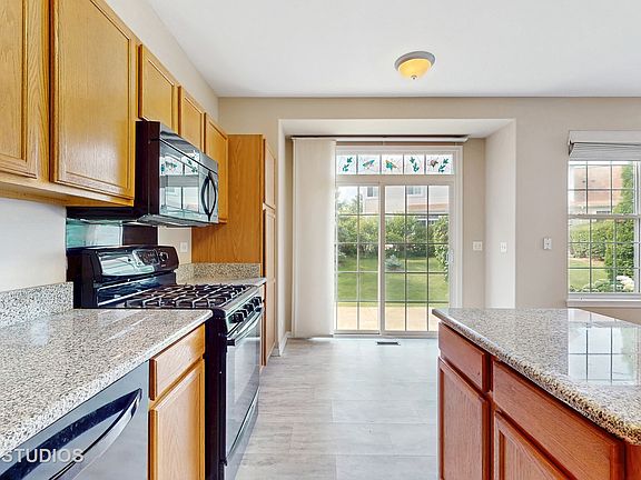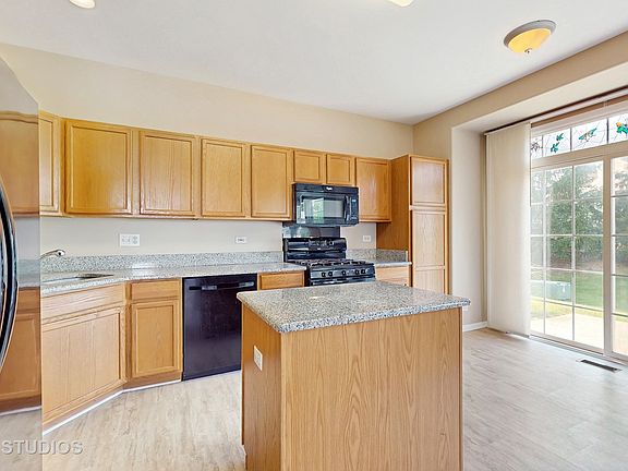 The Best Deal in Winding Creek, Algonquin! Light-filled and inviting, this 2-story end-unit townhome offers 3 bedrooms, 2.1 baths, and an open floor plan designed for modern living. The island kitchen features updated granite countertops, stylish flooring, and opens seamlessly to the family room with a cozy gas log fireplace-perfect for gatherings or quiet evenings at home. Step outside to a private patio ideal for relaxing or entertaining. The primary suite impresses with a walk-in closet and spa-like bath featuring dual raised vanities, a large soaking tub, and an updated glass-and-tile shower. Upstairs, enjoy the convenience of a second-floor laundry room and two generously sized bedrooms, each with ceiling fans. Recent updates include a new A/C and water heater (2023), along with contemporary light fixtures and window treatments throughout. Tucked away in a premium cul-de-sac location, this home truly checks all the boxes-style, comfort, and value!