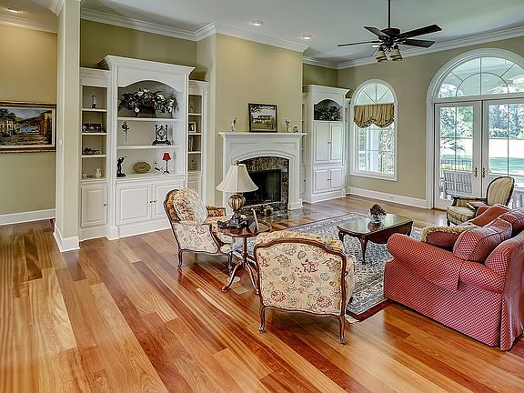 See 3D Virtual Tour! Homes like this do not come around often - Don't miss this opportunity! Tremendous curbside appeal w/great golf views from a private backyard. Shows like brand new, offers subdued elegance w/careful trim details & Brazilian Cherry Floors throughout the main level. Custom features abound paired w/superior craftsmanship. Kitchen boasts furniture quality distressed cherry cabinetry, unique island bar, SS appliances, roll outs & endless counter space. Luxury Master Suite, 10-12' Ceilings, Office, large bonus room w/balcony & wet bar, rear covered porch, 5 bedrooms w/private baths.Request feature sheet & See 3D Virt Tour