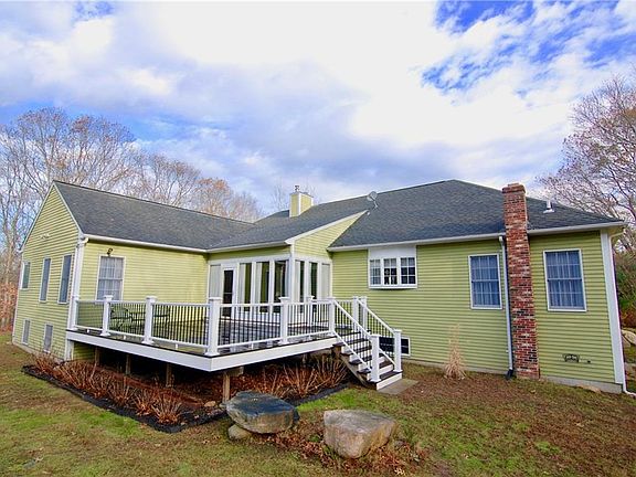 Single level living at it's finest! Set on a secluded lot tucked away at the end of a cul de sac, this 3 bedroom, 2.5 bath custom built ranch has an open floor plan and boasts over 2,100 sq ft. The kitchen/dining/family room offers a great flow for entertaining and leads to a sun-filled all seasons room. Spacious family room has a gas fireplace offering ambiance during the fall and winter months. There are two bedrooms and an office/den with a full bath in the front of the home while the master suite is privately nestled towards the back of the home. The lower level has walkout access and has limitless expansion potential. Additional features include central air, 2 car garage, paved driveway, new water heater and outdoor shower. Minutes from shopping, restaurants, Westerly beaches and historic Watch Hill. This premier location adds to the amenities of this wonderful property!