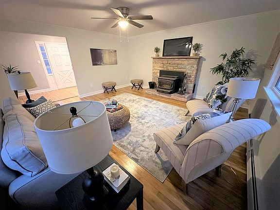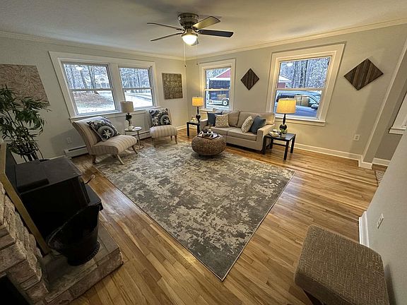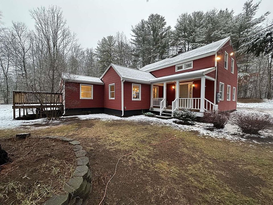 This 4 BR, 3 bath home is located on one of the nicest properties in Windham, NH! A BROOK meanders thru the backyard. The driveway runs from Collins Brook Rd, over the brook via the steel beam supported COVERED BRIDGE, and through the Woods to Lowell Rd! This home features an updated kitchen with quartz countertops and stainless steel appliances! A first floor ensuite has 2 closets and 3/4 bath! Large Dining room for Holiday gatherings. The Living Room features a high end wood stove with venting through a stone hearth! Also on the first floor is another bedroom, a full bath, and another room with laundry that could be used as an office! Upstairs is a bath with a walk-in shower and a soaking tub! A huge BR with a huge walk-in closet and another BR also with a walk-in closet! Outside, enjoy the private, 2.17 acre lot from one of your two decks! 2-car garage! 2 sheds. In the summer, you can barely see the house though the trees. Sit on your private deck and watch a Blue Heron on the shores of the brook! And 2 miles to Rt93!! One of the best school systems in NH! Windham HS (4 min drive) is arguably the best in NH! Windham Center School is just across the covered bridge, thru the woods, and across the street! New roof w/ warrantee! Septic Sys new in 2021! Home does NOT need special flood Insurance! The Interior earned a Certificate of Lead Safe Insurance in 2016! Town Beach 1.2 miles away. Don't miss this great house on a great property in a great town!