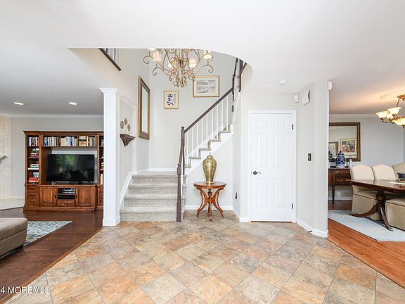 Private End Unit Townhouse at Colonial Sq surrounded by flowers & greenery. The grand foyer entrance with chandelier leads to the sunken living room, gas fireplace & Pella sliders to deck. Open kitchen offers cozy breakfast nook w/window seating, granite countertops, SS appliances, large island separates kitchen & din room. Second floor offers 3 bedrooms, 2 full baths & laundry. All baths have been updated. Large primary bedroom has adjoining room perfect for office, nursery, workout or add'l walk-in closet. Anderson slider off primary leads to a rooftop deck with Adirondack chairs, perfect area for relaxing. Finished basement has a bar, entertaining area, workout room & bonus room. 2 hot water heaters, crown molding. Location is a commuter's dream, minutes to train, ferry & GS parkway.