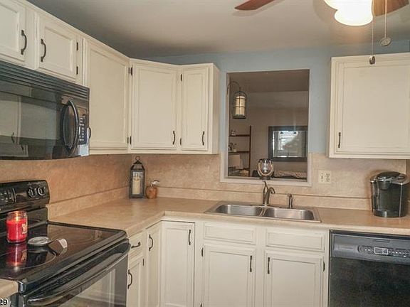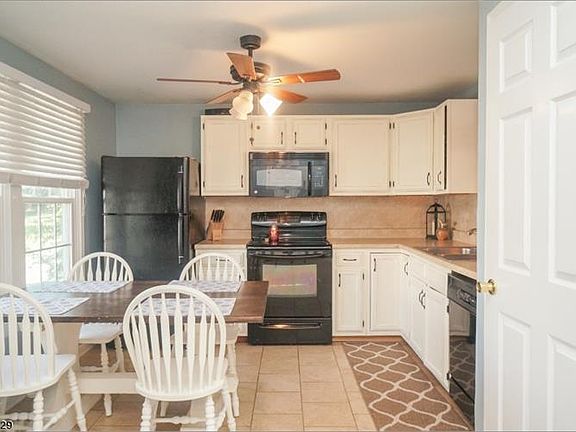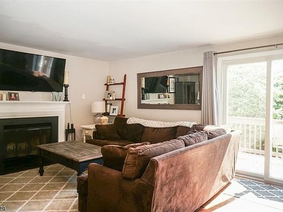 Wonderful home in commuter friendly location. Tucked away directly off of Route 23. The original model of community. Great end unit location. Beautiful hardwood floors and newer carpeting. Newer roof. Kitchen with pass thru to living room featuring wood burning fireplace and beautiful mantel. Updated powder room on main floor. Full finished basement as rec room and an office den space. Upstairs has master bedroom with walk in closet, two more bedrooms and full updated bath. The kitchen has ample room for dining. Sliding doors in living room lead to large deck with natural gas line to the included grill. The community has pool and clubhouse. Very close to shopping and a great location! Parking directly outside your front door and with just a few steps. Ease of living is here!