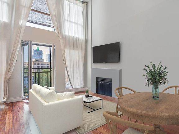 Charming juliet balconyOversized windowsNatural lightIndustrial characterModern comfortIn-suite laundryCozy gas fireplace