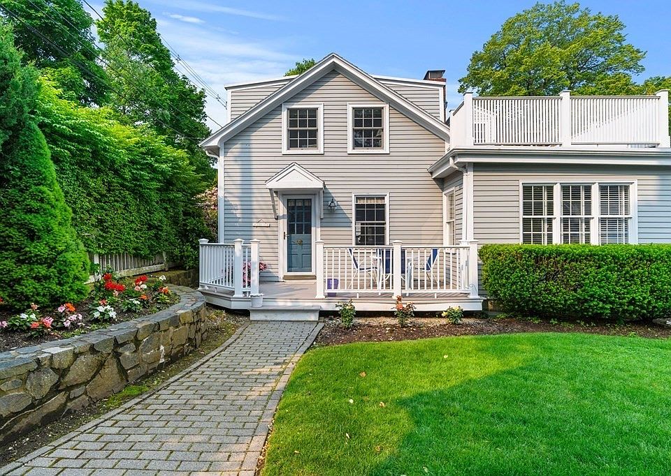 MARBLEHEAD NECK- This charming home is located in a highly desirable location, just 90 steps from the Corinthian Yacht Club and beach/waterfront access. This fabulous home is bright and sunny with lots of glass and HARBOR VIEWS from both levels. The kitchen is updated and has gas cooking. Watch the "colors being raised" at the YC from your own living room and ROOF TOP DECK. The first level includes a spacious dining room, living room and a family room w/ wood burning fireplace. The second floor includes 2 bedrooms, a full bath, modern laundry and spectacular harbor views. The main bedroom has direct access to the roof deck. Enjoy your lovely enclosed manicured yard with stone walls and perennial gardens. A detached garage provides ample loft storage and 2 car off street parking. Just a stones throw to The Corinthian Yacht Club, close to Eastern YC, Lighthouse Park, and a beautiful sandy beach that provides watercraft storage. Live here year-round or make this your summer retreat.