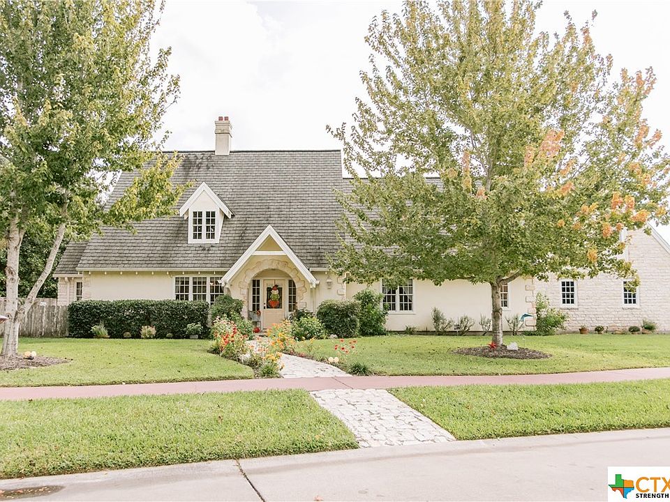 This breathtaking English-style home in Hidden Meadows will win your heart as soon as you arrive. Located in the very desirable Hidden Meadows neighborhood (the only gated community in Victoria) and directly across the street from the Victoria Country Club, this home offers the complete package! Walking in, you are greeted with high-end travertine tile floors, tasteful paint and texture selections, and an abundance of natural lighting that accentuate the luxurious details of this home. The spacious living room provides an open concept flow with the formal dining area, additional sitting/coffee/breakfast area, and the kitchen. You'll also immediately fall in love with the two sets of new French doors that overlook the back patio and quaint backyard. The pristine galley kitchen offers ample storage and granite countertop space, and ties in perfectly to the charm and theme of this one-of-a-kind home! A sizeable downstairs private bedroom features high-end wall sconces and an additional set of French doors overlooking your own private patio. The primary ensuite bathroom in equipped with a lovely free-standing claw foot tub, a granite tiled walk-in shower, his/her vanities, and a large walk-in closet. The downstairs spare bedroom has a remarkable amount of closet space and features it's own private bathroom with tiled granite as well. The third bedroom/bathroom is located upstairs above the garage and is perfect for an older child/mother-in-law suite/man cave/craft room/office, or whatever else may best suite you. The attic is decked and has a staircase for ease of access up and down. This house is truly special and a rare opportunity to call Hidden Meadows your home; a neighborhood with walking trails, privacy/security, and a real sense of old fashioned community. Don't forget, Victoria Country Club is within walking distance and offers dining, swimming, tennis, golf, and social. Go and meet your dream home today!