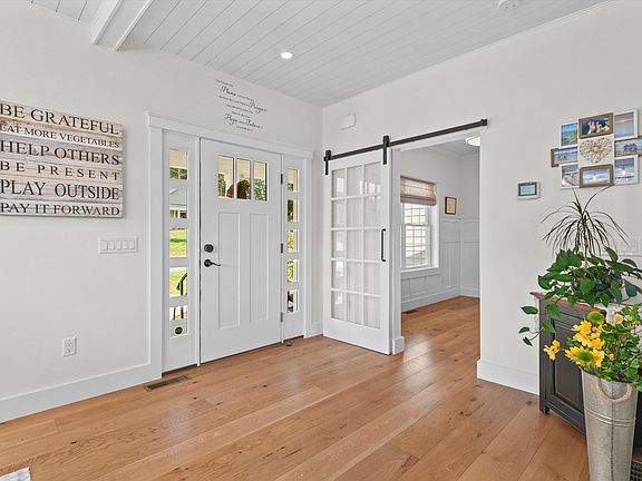 Luxury Living in Salem’s Premier Neighborhood! This custom home near the MA border showcases true craftsmanship and high-end finishes throughout. The chef’s kitchen is a showstopper featuring quartz countertops, a pot filler, double wall ovens, wine cooler, large center island, and a sleek butler’s pantry perfect for entertaining. Elegant custom ceilings and an open layout create a grand, inviting feel. Cozy gas fireplace with soaring ceilings is the center piece of the living room for a warm and inviting atmosphere. The first floor primary suite offers a spa-like bath with soaking tub and an impressive 18’ walk-in closet, first floor laundry, office/additional bedroom and dining room round out the first floor. Upstairs includes two more bedrooms, a spacious family room, and a 25’x39’ unfinished bonus space already plumbed for an additional bath, ideal for future expansion. Epoxy floors elevate both the 3 stall garage and walkout basement, which also includes generous storage. OWNED solar panels provide energy efficiency without added cost. Enjoy outdoor living on the 32’ covered farmer’s porch with metal roof or the 23’x12’ covered back deck with gas plumbed for the grill! The beautifully landscaped lot features extensive brickwork and a garden area, all in a tranquil setting. This home was built with no detail overlooked, luxury, functionality, and efficiency combined in one of Salem’s most desirable communities!