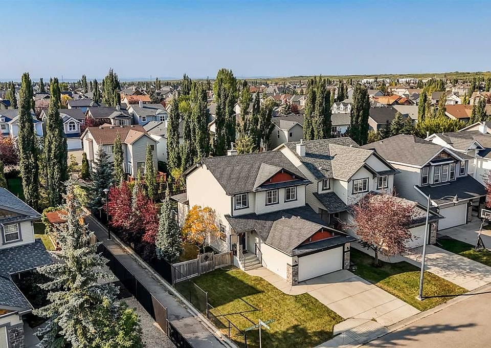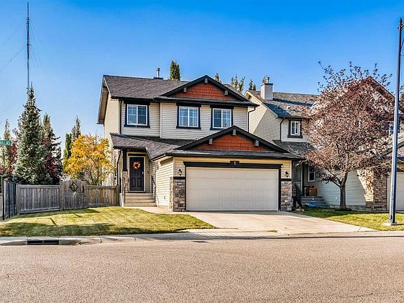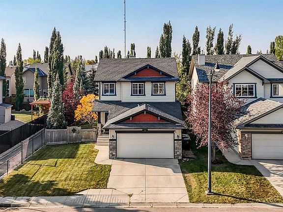 The total package in sought-after Cougar Ridge. Located on a premium oversized lot, offering sunshine & privacy with South facing yard exposure & bordering on to the community pathway system. Immaculately maintained and updated on all three levels. Modern open plan, flooded with natural light thanks to many large windows. Full updated kitchen with timeless white shaker style cabinetry, textured subway tile backsplash, & marble style quartz perimeter & island countertops. Solid maple hardwood throughout the main level. Impressive living room overlooking the lush rear yard with a stone clad gas fireplace. 3 generous bedrooms up including huge primary retreat with full ensuite & walk-in closet. All upper bedrooms feature spacious closets & storage. All bathrooms throughout the home feature matching new renovations & updates. Fully developed lower level with media room, fitness area/gym, & flex/office space currently used as a guest room. Many updates & extras throughout including fresh paint, new flooring, tilework, countertops, lighting & plumbing fixtures, Central A/C, appliances & mechanical systems, & much more. Huge, sprawling rear yard with sunny South exposure, no neighbors beside, & many mature trees make this a private family oasis year-round. Multi-tiered composite deck & storage shed. Attached double garage is frully insulated & dry-walled. Take advantage of Cougar Ridge's network on walking pathways directly from beside the home which wind through a network of walking/bike pathways, neighborhood parks, ponds, & connect with Medicine Hill/Paskapoo Slopes reserve forest area. Close to top schools, shopping on 85 St, Aspen Landing, & and a short drive to Downtown!
