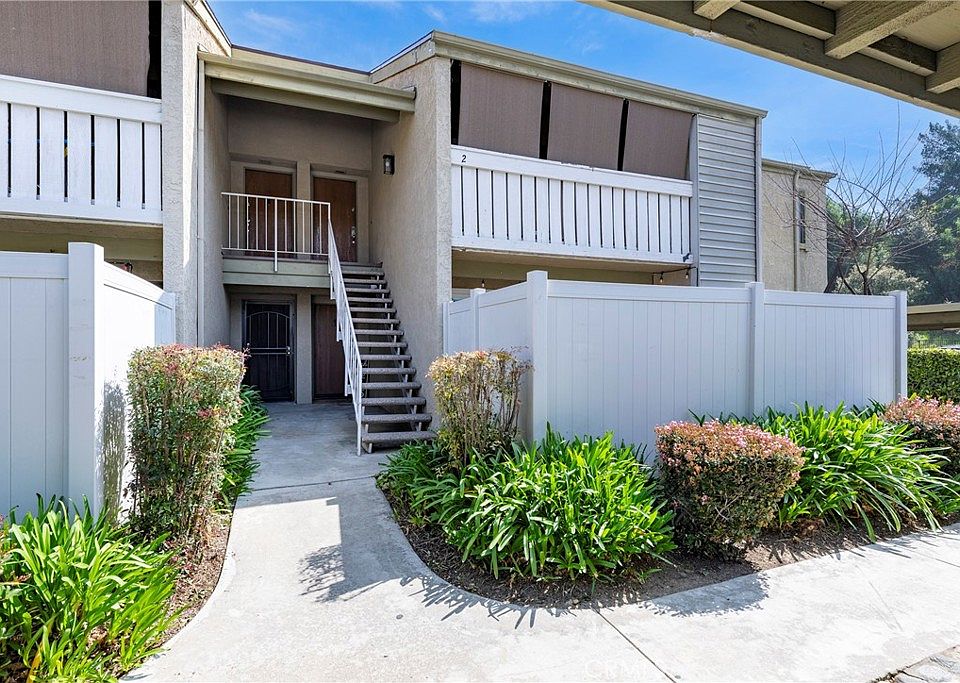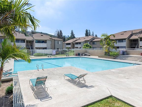 This stunning 2-bedroom, 2-bathroom end unit condominium offers the perfect blend of comfort and contemporary style. Step inside and be greeted by an expansive living area with an abundance of natural light, courtesy of a new wall-to-window sliding door with doggy door, that leads to your own private patio. This open floor plan seamlessly connects the spacious kitchen to the dining and living area, ideal for creating culinary masterpieces while staying connected with loved ones.The expansive kitchen is a home chef's dream, boasting ample counter space, a deep pantry to store all your culinary essentials, and a spacious breakfast bar perfect for casual dining or entertaining. Unwind after a long day with a drink at the custom-built mini bar, a unique touch that adds personality to your living space.Comfort is guaranteed year-round with central air conditioning and heating, while the convenience of an in-unit washer/dryer hookup allows you to ditch the laundromat drudgery.Beyond your haven, a sparkling community pool and three inviting spas scattered throughout the complex beckon relaxation. Take a dip, unwind amidst the bubbles, and let your worries melt away. Never worry about parking again with your two designated spots, conveniently located right next to each other and very close to your front door – one covered for sun protection and the other offering easy access for any size vehicle.This fantastic location places you close to the 60, 71, and 57 freeways, making commutes and weekend getaways a breeze. Explore a variety of local shops and restaurants, all just a stone's throw away. This condominium is more than just a place to live - it's a lifestyle. Don't miss this opportunity to embrace sunshine, comfort, and an abundance of amenities!