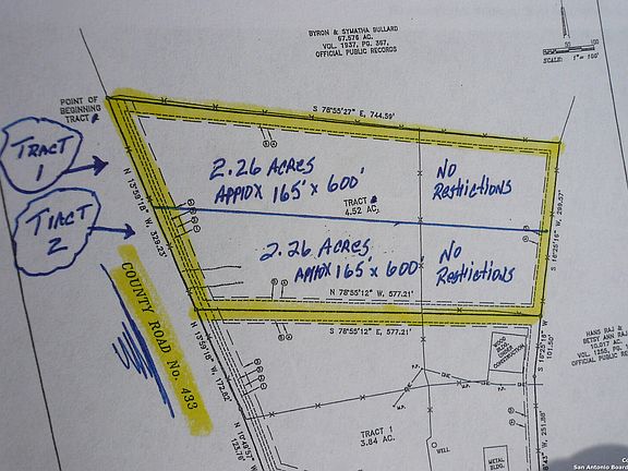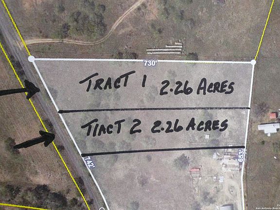 Very Clean & Mostly Cleared 2.26 Acres w/Scattered Trees & NO Restrictions OR Flood Plain OR City Taxes off a Paved Road w/Approx 161' of Frontage x Approx 600' Deep... in Stockdale Tx,Wilson County,Low 1.8% Tax Rate ..All Utilities are Available but Not on the Property..Water meter provider is Sunko Water Co & Electric/Internet is from GVEC..Seller is in the Process of Platting the property thru the County..See attached 1st Draft Survey showing 4.52 acres that is being divided in half..Thus (2-Ea) 2.26 Acre Tracts..More Detaills Coming..**AGAIN NO RESTRICTIONS**