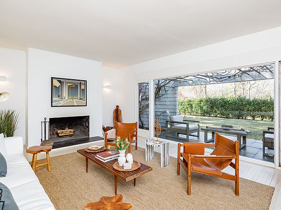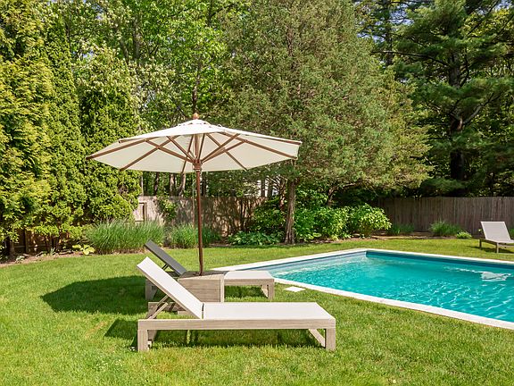 Rental Registration #: # 22-1132 A chic modern home punctuated by the most serene setting! This pristine summer rental offers a modern minimalist design throughout the 4 bedrooms, 4 full baths (includes bonus guest house with its own full bath). An open living room and dining room offer panoramic views of the beautiful garden and inviting heated pool. A fully equipped modern cook's kitchen and comfortable den complete this inviting first floor. On the second floor, enjoy the primary suite with en suite bath, and two guest rooms that share a full bath. The separate bonus guest house offers privacy, full bath and its own terrace --a private oasis for overnight guests. All rooms are light filled and provide ideal access to the blue stone patio and pool. For outdoor enjoyment, there is also an outdoor seating area with fire-pit, along with bikes and beach chairs to enjoy the close ocean beach, just 2 miles away. Owner also open to 6-week term. EH Rental Perm # 22-1132