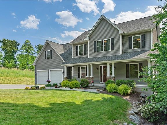 If you have been looking for spectacular, look no further! This beautiful colonial is situated on 1.72 acres of secluded land and offers you peace and privacy in a glorious setting located in the desirable Ridgeland Hills neighborhood. Step right up to the farmer's porch and feel right at home as you enter the first floor, which features a spacious eat-in kitchen w/granite countertops and stainless steel appliances with island for additional seating and sliding doors leading out to the deck, a formal dining room, a living room with gas fireplace, a mudroom and a half bath. The second floor boasts an incredible master suite with connected office space, a full bathroom with double vanity sinks, granite countertops, a private custom walk-in stand up shower, and a 6x10 walk-in closet. Also on the second floor are two additional large bedrooms, a full bath with double vanity sinks and granite countertops, plus an oversize bonus room and laundry room. The basement has an additional 962 sq ft of unfinished space with plumbing for a full bath and walkout sliding glass doors to a patio leading to the back yard. Only 1 mile to Georgiaville Pond for swimming, fishing, boat launch, and nature hikes. This home offers the privacy and serenity of country living while only being just minutes from the highway and comes with a 1 Year Home Warranty. View Virtual Tour.