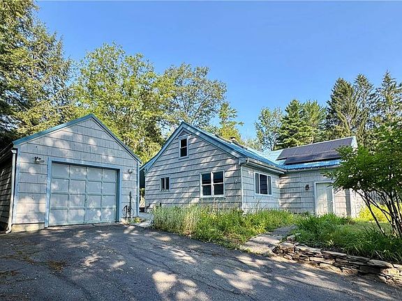 LOCATION, LOCATION, LOCATION! This warm and inviting 3 bedroom, 1 1/2 bath Cape is a very short walk to both SUNY & the Middle/High School. There's great open living space with both a large living room and family room on the first floor. The kitchen has Mexican tile counters & breakfast bar, stainless appliances and lots of storage space. The dining area leads to the family room with wood burning stove and great built-in shelving. Two bedrooms and the full bath round out the first floor. The light filled main bedroom with 2 skylights and the 1/2 bath are on the second floor. Not only is this home move-in ready, it's ENERGY MINDED! Recent upgrades include a new solar heating/air conditioning system. It also has solar hot water. A large portion of the garage has been finished for a home office/studio space. Outside there are beautiful perennials, grapes, apple trees, raised beds, greenhouse, storage building, patio and the gorgeous stone front wall! Plenty of off street parking with an additional circular driveway The entire lot has been thoughtfully landscaped to relax and enjoy nature! This home is a must see!!!