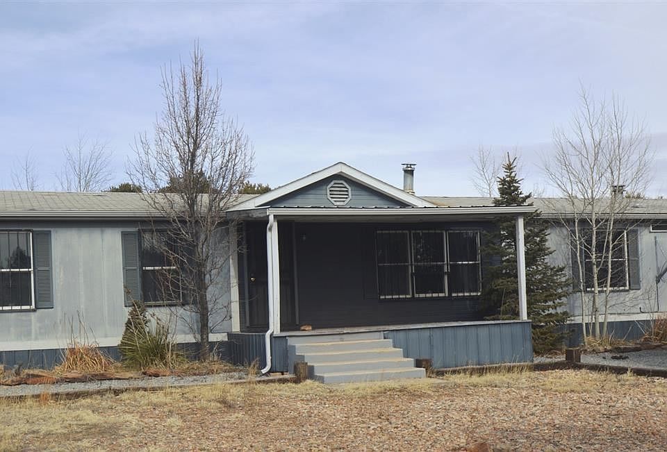 This spacious 3 bedroom, 2.5 bath manufactured home on 5 acres is a short 6 minute drive to Las Vegas, with easy access to I25! Living room has a tile hearth, surround and stove pipe ready for your wood burning fireplace, family room has built in cabinetry, wood burning fireplace and patio doors that open to a spacious rear deck. The kitchen has ample cabinetry, counters and opens to the family room. Property also includes a two-car separate carport, detached spacious workshop/studio, covered front porch and full width partially covered back deck. Nicely landscaped with gravel drive, patio area, pine, aspen, and pinon trees. Home could use a bit of TLC; property is offered as is and home will convey with active MVD title. Showings for prequalified buyers only.