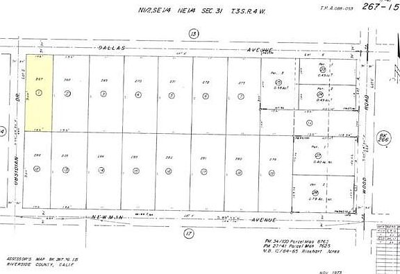 30,492 sq. ft. level corner parcel in Rinehart Acres, Woodcrest, a suburb and adjacent to Riverside, in the fastest growing County in Southern California. New custom homes one lot over. R-A Zoned allows manufactured homes, horses, and farm animals. Frontage of 101 feet and side boundaries of 309 feet. Parcel is close to Wood Rd., which is a major commute to Riverside. Martin Luther King High School, Frank A. Miller middle school & Woodcrest elementary school minutes away. Easy commute to all major roads and freeways to Orange, San Bernardino and Los Angeles Counties. Custom home/ranch size parcel in a nice family location. Close to schools, churches, shopping and services. Parcel adjacent - (267-150-002) also available. Builder/investor opportunity.