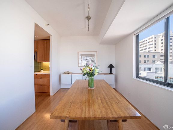 Must see updated and reimagined 2 bedroom, 2 bath unit with fabulous downtown views! With an artist's touch and an architect's attention to detail, this special unit has been updated with bamboo flooring, enhanced acoustics in walls and windows, recessed lighting, custom doors in the primary bedroom, built-in cabinetry in the living and dining rooms, custom kitchen cabinets and backsplash, as well as custom bathroom cabinets and a private balcony. Flooded with natural light and located in the heart of the city, this exquisite condominium offers a perfect blend of luxury, convenience, and style. Situated in a prime location, residents enjoy easy access to a plethora of amenities and attractions, making it an ideal place to call home. Easy access to public transportation, tech shuttles, the performing arts including the opera, symphony, ballet and jazz center as well as Polk Street restaurants and shops.