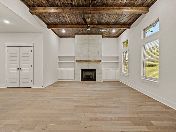 From the beamed ceilings in both the living room and primary suite to the upgraded cabinetry and rich 3CM granite, this home is full of thoughtful touches and high end finishes. Enjoy wood floors throughout, detailed trim work, a designed light package and a fully custom primary shower. The open concept living area is filled with natural light, anchored by a cozy fireplace flaked with built-ins. The kitchen is a dream featuring a large island with bar seating, cabinets that extend to the ceiling, upgraded range and dishwasher, under-cabinet lighting, tile backsplash, soft-close doors and a walk-in pantry. The primary suite offers dual vanities, a luxurious soaking tub, water closet, tile shower and dual walk in closets. The split floor plan includes three additional bedrooms and a well-appointed full bath with dual sinks and large linen closet. See photos: Finishes similar to completed home at 30 Cromer Drive, Bella Vista MLS #1313947. Bentonville Schools. Preferred lender rate buy down option as much as 4.875%.
