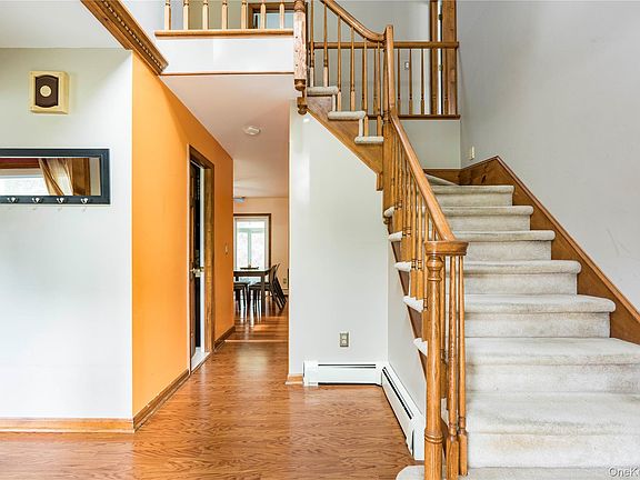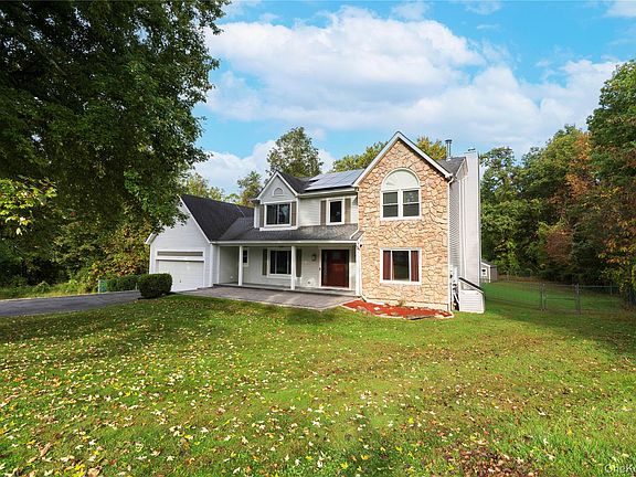 Charming 4-Bedroom Colonial on Quiet Cul-de-Sac with Sunroom & Solar Panels Welcome to this attractive 4-bedroom, 2 full and 2 half bath Colonial nestled on a peaceful cul-de-sac. With its inviting HardiePlank and stone exterior and welcoming front porch, this home offers curb appeal and comfort in equal measure. Inside, you’ll find a versatile layout featuring a spacious living room with a cozy woodstove and a separate family room with a classic wood-burning fireplace. The chef’s kitchen is a standout with a skylight, granite countertops, stainless steel appliances, and an abundance of cabinetry—perfect for cooking and entertaining. A formal dining room adds elegance to your hosting options, and a private laundry room provides everyday convenience. Upstairs, the vaulted-ceiling primary suite offers a serene retreat, accompanied by three additional bedrooms and a shared full bath. A bonus room provides extra flexibility for a home office, playroom, or hobby space. The finished basement includes a large family room and an updated half bath—ideal for guests, a home theater, or rec room. Step off the kitchen into the expansive 12’ x 30’ sunroom, a perfect space to relax and enjoy views of the level, private backyard. Additional highlights include owned (not leased) solar panels for energy efficiency and cost savings. Conveniently located near shopping, restaurants, Route 9, and the Taconic Parkway, making commuting a breeze. Don’t miss this opportunity to own a well-appointed, energy-smart home in a prime location!