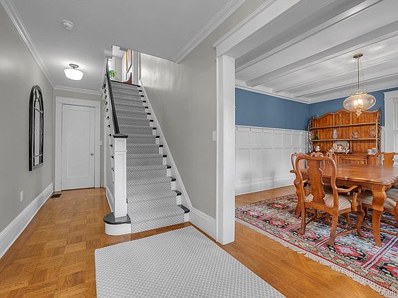 Welcome To This Completely Renovated in 2017 Home Combining Timeless Character With Modern Comfort. A Circular Driveway & Stunning Glass-Enclosed Entry Porch Sets The Tone For This Wonderful Home, Offering A Warm & Stylish Welcome. Step Inside to a Gracious Formal Living Room with A Gas Fireplace & Formal Dining Room With Wainscoting & Beamed Ceiling.