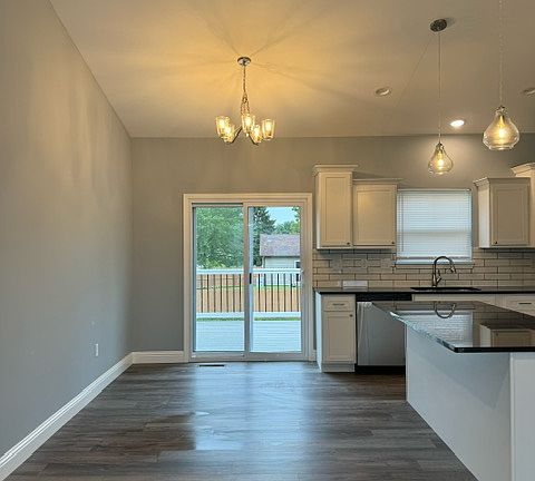 Partially finished basementQuartz countertopsVinyl plank flooringSmall composite deckCarpet in bedroomsStainless appliances