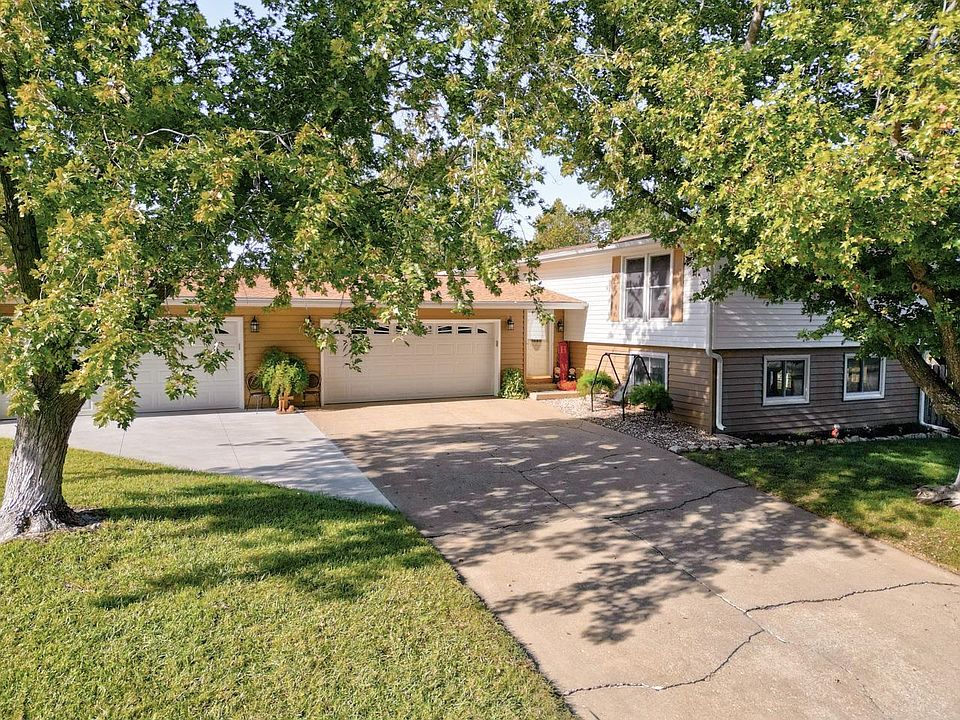 Impeccably maintained 3 bedroom, 2 bath home with open floor plan, 4 car garage, one 2 car garage is new, living room and family room, privacy fenced yard on over 1/3 of an acre. Great neighborhood! Some of the recent updates and featured amenities are: New hot water tank (2018) Extra storage closets in garage as well as loads of space above closets Walk out basement with Concrete Patio (19'6" x 12') New Central heat and air - Lennox (2022) Walk-in master closet New windows and white siding (2010) New 2nd story Deck with awning with self-contained guttering (2019) Kitchen & upstairs bathroom remodeled (2013) 2 car garage added & cement driveway (2019) 2 new garage doors and openers (2019) new roof (2019) New brown siding, soffit, Fascia oversized guttering (2019) New swing set, gravel and plastic edging (2021) New vanity, sink, faucet, and lighting in downstairs bathroom (2021) 2 new triple pane sliding glass doors (2022) New fence posts, cement and 2x8's, and gates (2023) Appliances inside the home stay - washer/dryer (2016), Range and microwave (2017), Refrigerator (2019), Dishwasher (2022). Deep freeze in garage does not stay