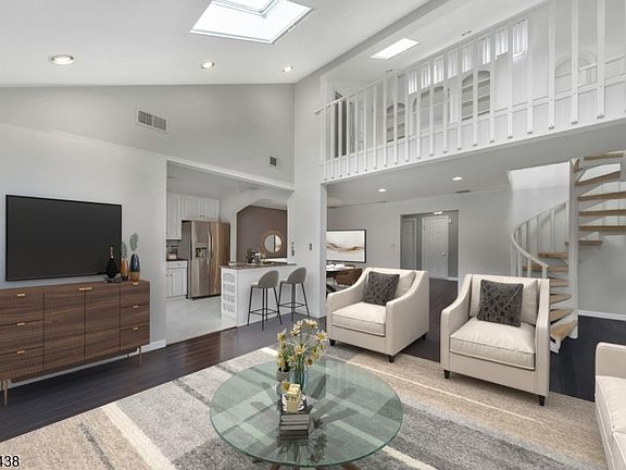 Welcome to this spectacular 3 bedroom, 2.5 bath end unit condo nestled in the heart of Caldwell, just steps away from shops and dining. LOCATION... LOCATION... LOCATION! Greeted on the main level with high ceilings and radiant sun soaring through skylights, enjoy this open and spacious floor plan, lending itself perfectly to every day living and entertaining. Indulge yourself with this well -equipped eat-in-kitchen and breakfast bar, open to your dining and living room, leading to an outdoor balcony. The Primary and second bedrooms are conveniently located on the main level with two full baths, laundry room and extra storage space. The second level features a spacious loft and third bedroom/study. The Basement level has a one-car oversized garage, BONUS recreation room for versatile use PLUS powder room and additional storage. Conveniently located one block from shops, dining, public transportation, major highways, Newark Liberty International Airport, hospitals, schools, parks and recreation, this home is a real GEM!
