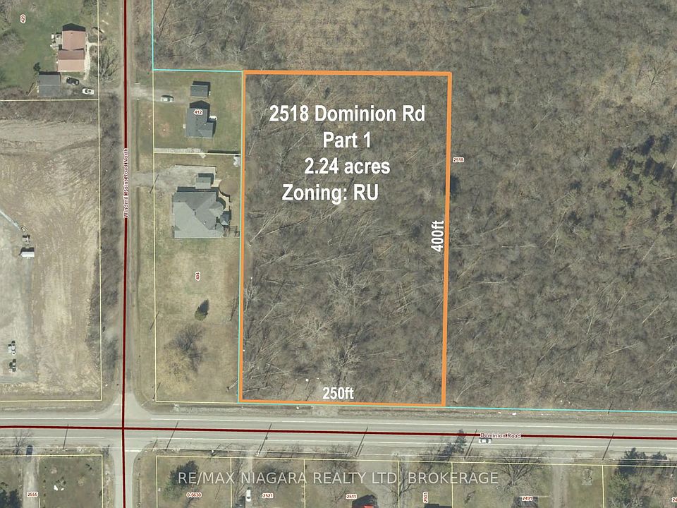 Discover the perfect opportunity to build your dream home on this expansive 2.25-acre rural lot, located on Dominion Rd. Enjoy the peaceful countryside lifestyle while remaining close to all the conveniences of Fort Erie, Ridgeway, and Crystal Beach. With 250 feet of frontage and 400 feet of depth, this lot offers plenty of space to design and create the home you've always envisioned. Essential services such as hydro, natural gas are at the lot line and municipal water is available, providing ease for future development. Part 2 and Part 3 on survey sketch are also for sale, separately. Situated near Windmill Point Rd, you'll have quick access to the southern shores of Lake Erie, perfect for launching a kayak or paddleboard. Outdoor enthusiasts will also appreciate the proximity to the 26km Friendship Trail, ideal for walking, running, and cycling. For commuters, the location is highly convenient: just a 5-minute drive to the QEW for easy access to Niagara Falls and Toronto, or a 10-minute drive to the Peace Bridge, connecting you to Buffalo, NY.