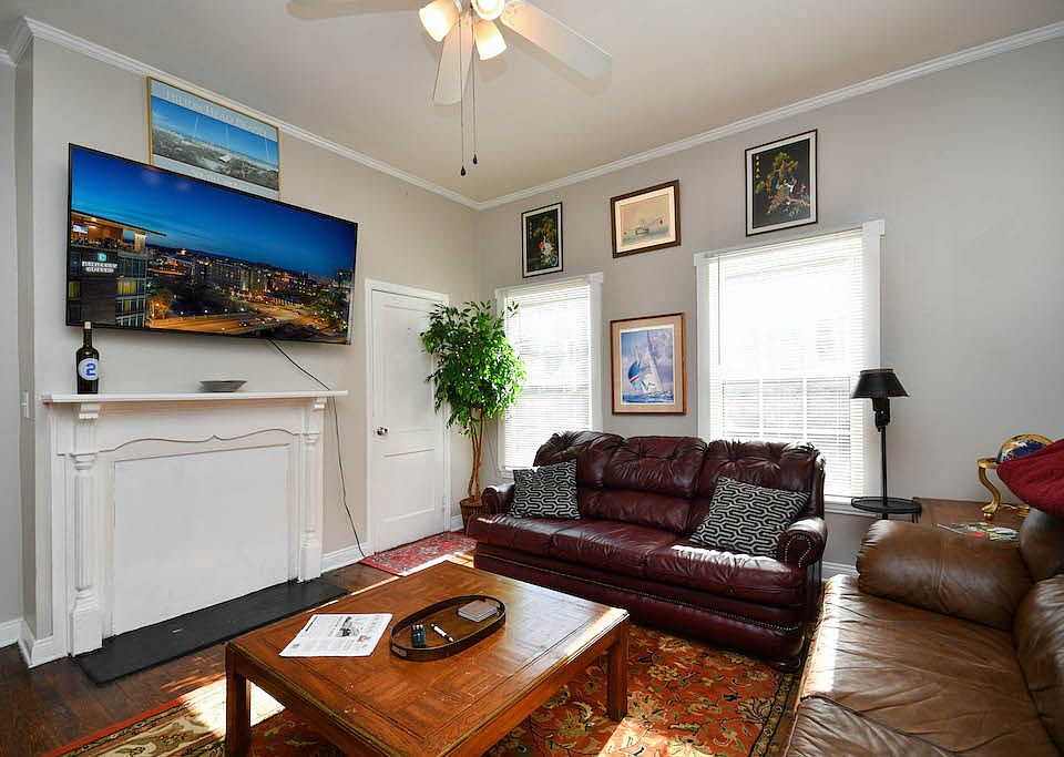 Covered front porchBlackout curtainsOriginal hardwood floorsTall windowsFenced backyard
