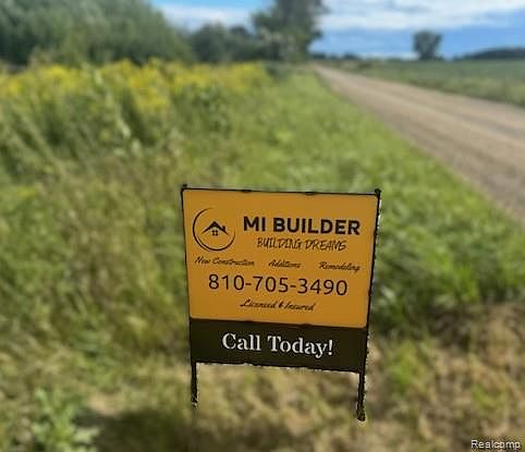 Envision this open space, pristine countryside 2.69+/- acre lot with a trending Modern Farmhouse style, Craftsman style OR buyer choice style home to be built (approximately 1,200 sq ft), just outside the quaint village of Peck, Michigan within the Peck Independent School District! Covered porch is an inviting approach with detailed wood columns, traditional vinyl siding in addition to some board & batten style siding accents. This 3/2/2 is has an open great room perfect for entertaining. Note the primary suite roomy walk-in closet exceptional for a home this size! Plenty of room to roam, add your own style barn and a few animals to boot! Options for personal customization available. Whether you are starting a new chapter, settling into retirement or seeking a versatile space to call you own, this new construction home, built by MI-Builder, embodies the best of modern living in a tranquil countryside setting. Call today for your private tour of the property and home site!