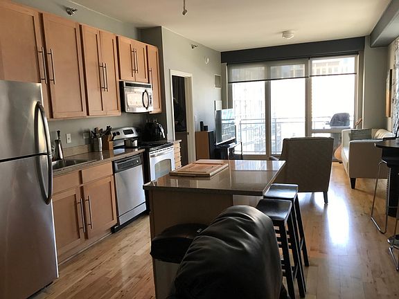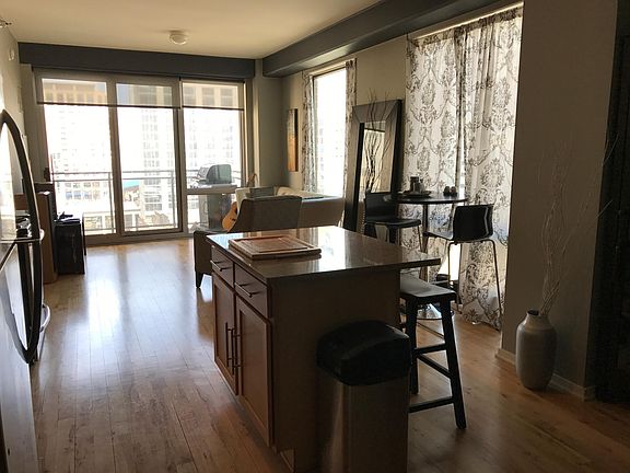 This spacious 1 bed/1bath unit features floor to ceiling windows, 9' ceilings, balcony, hardwood floors, in-unit washer/dryer, stainless steel appliances, 42" maple cabinetry, 3/4" granite countertop. Heat, air-conditioning, high speed Fiber internet, water, trash are all included in your rent! The unit comes with a storage locker on the same floor and a parking spot in the private nested area! The building has a bike storage room, secured entrances into the building and elevators. Only $2,100 per month! Steps away from the Red Line, Lake, Grand Park, restaurants, shopping and more! Please allow 48 hour notice to current tenants. Rent includes heating, cooling, internet, water and garbage.