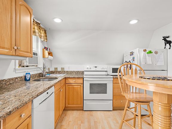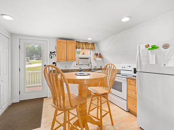 This freestanding A Frame detached condo in Meredith with 2 beds & 2 baths is an affordable way of getting into the Lakes Region lifestyle. Close to all the Lakes Region has to offer, yet tucked away in a small association that has minimal traffic and an inviting in-ground pool and the use of a day dock . As you enter the front door into the kitchen area off the front, low maintenance, Trex deck, you will find a well laid out kitchen with granite counters, laminate flooring, and an eat-in dining area. The living room is an ample size with the laminate flooring continuing, electric wall fireplace, and sliders leading to a new outside deck large enough for entertaining, and comes equipped with a comfortable swing for 2, extra chairs, and an outdoor dining table w/umbrella. The spiral staircase leads to a loft accommodating 2 sleeping areas, and sliders opening onto a small deck. The primary bedroom, on the lower level, has a 3/4 bath, brick hearth with a pellet stove, sitting area, and glass sliders leading to a covered block patio area overlooking a picturesque backyard for your viewing pleasure, and plenty of lawn for all your outdoor games and evening fires in the gas firepit on the patio. This condo comes mostly furnished and ready to start enjoying. You will like the low condo fee of $200 a month. This can be used as a permanent residence or a vacation get-a-way, and yes, pets are allowed, however rentals are Not. Open House Saturday -Aug 26 from 10:00 to 12:00.