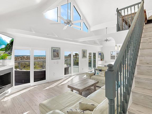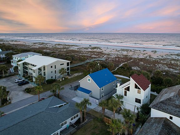 Prepare to be captivated. Let your eyes wander and your heart leap as you step into this oceanfront masterpiece. Wake up to breathtaking sunrises over the Atlantic and fall asleep to the soothing rhythm of waves and rustling palmettos. Nestled directly on the ocean in the vibrant heart of St. Augustine Beach, this home is more than a residence—it's a lifestyle. Boasting a coveted transferrable vacation rental license, luxury finishes, and turnkey furnishings, this is your dream escape realized. With tons of upgrades, this coastal gem combines modern sophistication with relaxed elegance. The brand-new roof seamlessly complements the blue skies and sparkling turquoise waters, while the design offers an effortless blend of form and function. Spanning nearly 3,000 square feet, the home features 5 bedrooms (including two luxurious primary suites), 4 bathrooms, and a versatile third-floor loft. With two separate living rooms, ample deck space, and an open-concept layout, there’s room for everyone to enjoy their own slice of paradise. Step into the first floor and you’re greeted with a bright, airy living space that flows naturally into the fenced, turfed backyard—a private retreat perfect for lounging, entertaining, or simply unwinding. The wet bar and two guest bedrooms with accompanying bathrooms make this level ideal for hosting or multi-generational living. The second floor steals the show with vaulted ceilings and a seamless connection between the kitchen, living room, and expansive deck. Sunlight streams in, enhancing the natural beauty of the home’s modern finishes. The kitchen, with its granite countertops, chic backsplash, stainless steel appliances, and generous seating, is a chef’s dream and the perfect spot for gathering. Step outside onto the ocean-view deck to soak up the salt air, savor a morning coffee, or host unforgettable sunset soirées. Positioned perfectly on a protected dune, this property provides peace of mind while offering easy access to some of St. Augustine Beach’s best restaurants and bars. The transferrable rental license—an exceedingly rare gem in this market—adds tremendous value and flexibility, making this home as much an investment as it is a sanctuary. Whether you’re seeking a luxurious retreat, a high-performing rental, or both, this home delivers on every front. Don't let this rare opportunity slip away—schedule your private showing today!