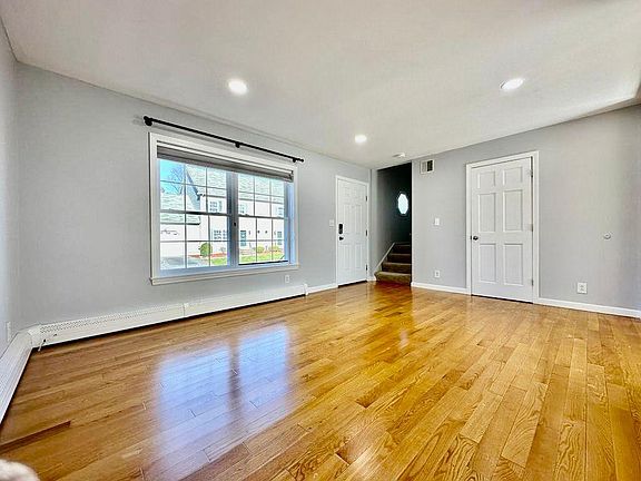 Absolutely gorgeous & bright 3-Level, 2 Bedroom gem on a quiet street in highly desirable & convenient North Woburn! Updated lighting, stunning hardwood floors, and fresh paint are just some of the highlights. Enjoy the spacious sun-filled kitchen with gleaming tile floors, beautiful wood cabinets & a dining area. The cozy front-facing living room overlooks the peaceful, manicured location of this quiet dead end" street. First Floor 1/2 Bathroom. 2 Large top-floor bedrooms with ample closets & ceiling fans. Clean & bright full bathroom. Serene, LARGE plush, professionally landscaped backyard, and large wood deck are ready for entertaining and relaxing. In-Unit Laundry. HUGE and beautifully finished basement for extra living area and storage, 1 car garage parking & 2 driveway spaces. 3-minute drive to 95 & NEW Woburn Village Shopping Center with fantastic Retail & Restaurants. Available on April 15th... Owner pays for water. Renter is responsible for gas and electric . No Smoking allowed . No pets allowed. Last month rent due at signing.