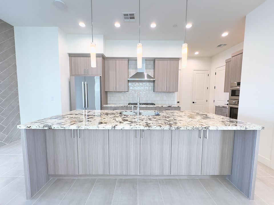 This residence showcases our Floor Plan 1R. The living area boasts an upgraded 50'' Vector fireplace with a tiled surround and provides access to your covered patio and outdoor area. The spacious kitchen with breakfast nook is equipped with Bosch stainless steel appliances, Copenhagen Granite countertops, polished chrome hardware, and a pantry for added storage. On the second level, you'll find a split Primary suite and guest bedroom, each with their own patios. Throughout this beautiful home, Copenhagen Granite adorns all countertops and vanities. Additionally, there is a loft/game area and a home office/den. Enhanced carpet and tile flooring complete this remarkable new home.